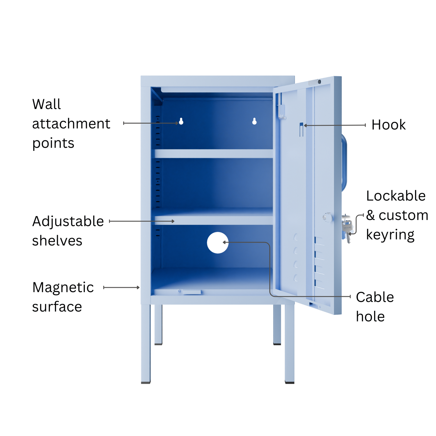 Like everything we make, this locker is incredibly simple to set up. It comes with all of the hardware you need and you don’t need any tools. Better yet, it’s just as easy to take apart and pack up when you move.