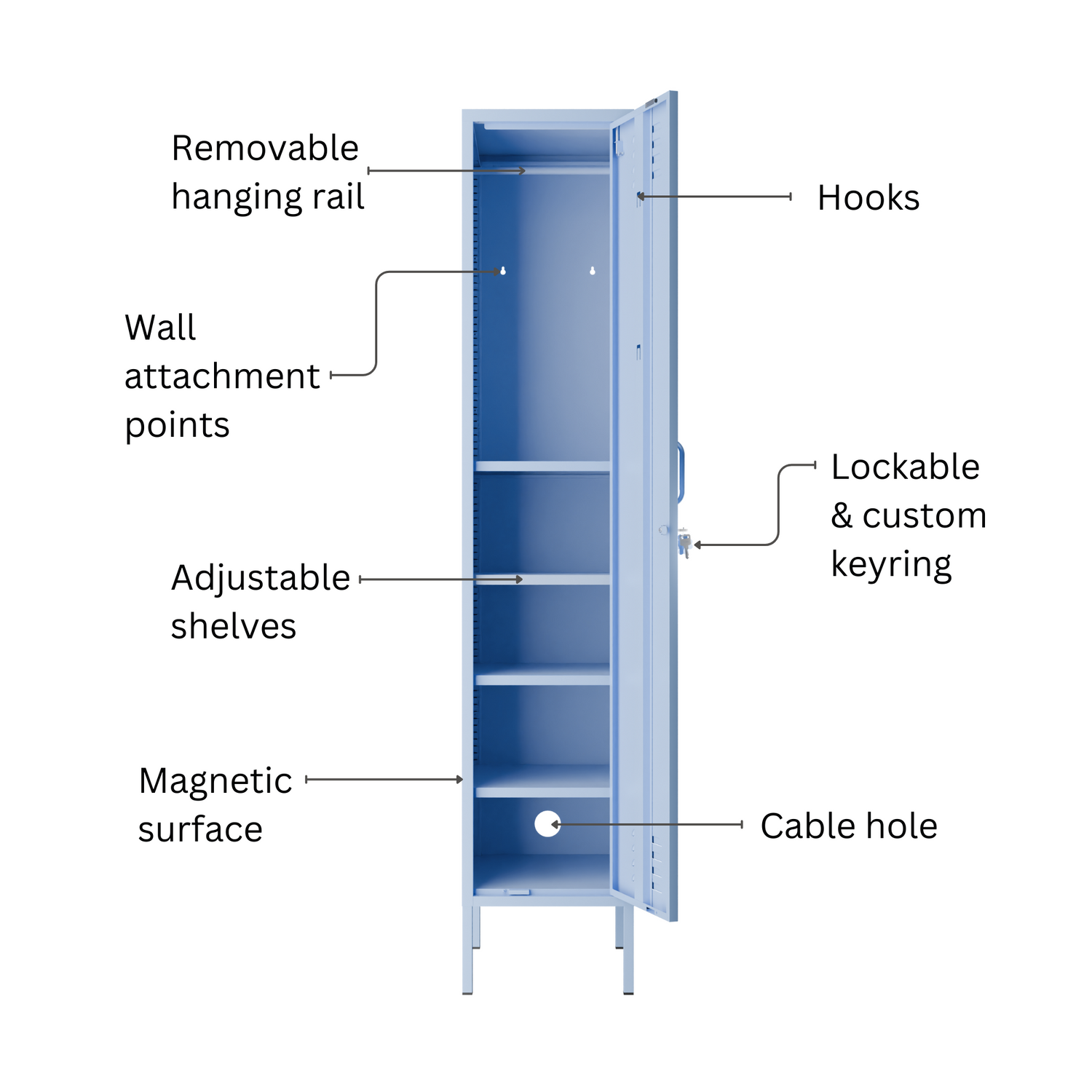 Check out the Lanky Locker – it's tall and slim, but don't be fooled, it can hold way more than you'd expect!